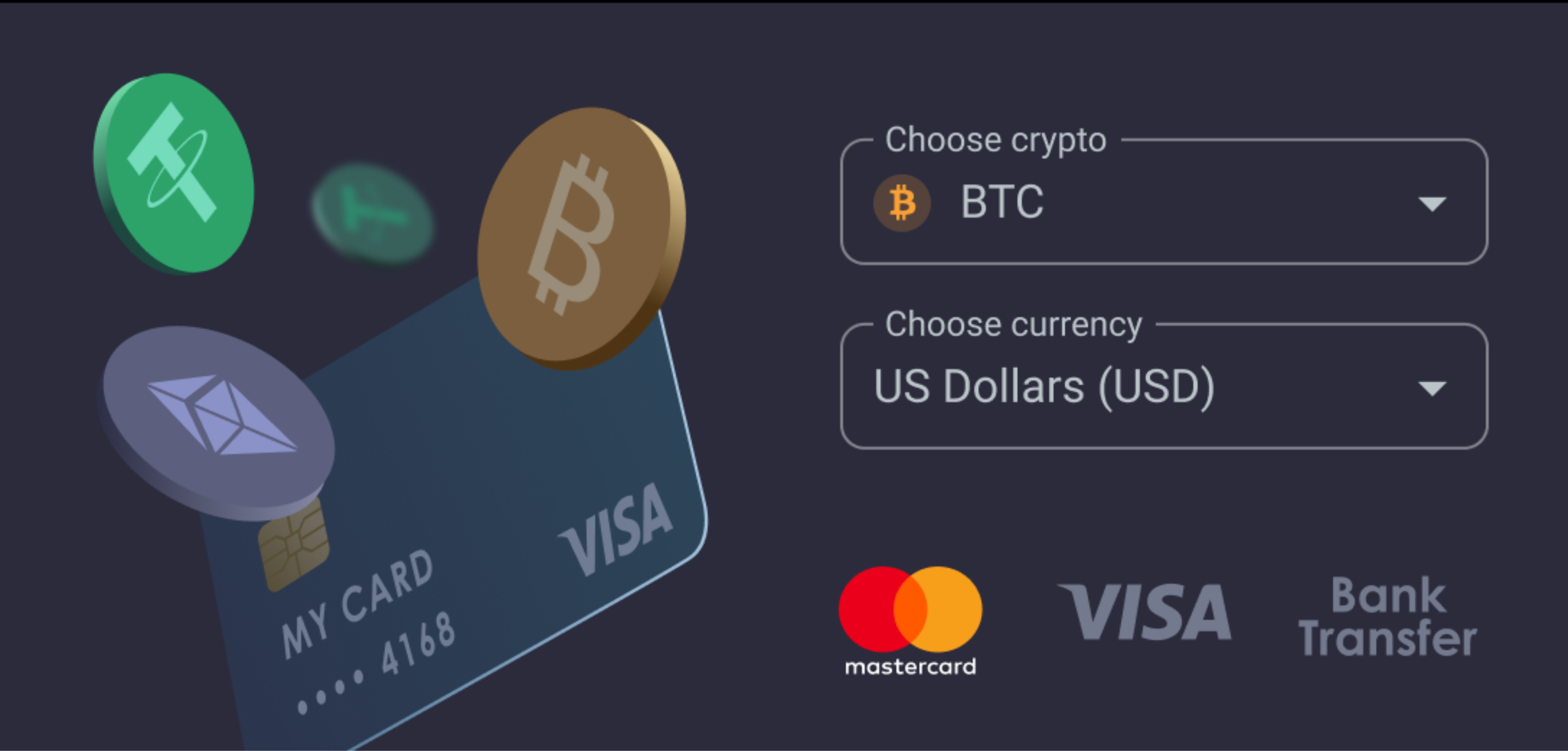 Easily purchase Bitcoin, Ether, Tether and other major digital currencies with VISA/Mastercard or by a bank transfer.